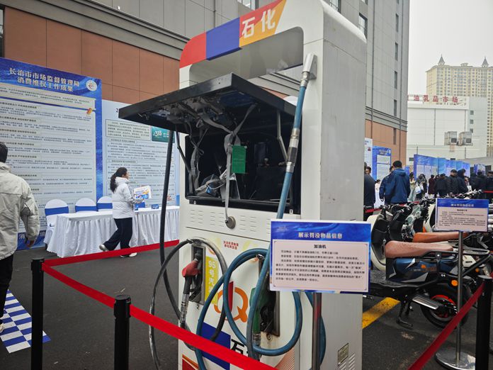 活动现场展示出了缺斤短两的加油机