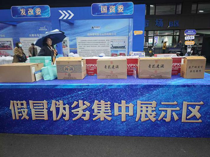 活动现场展示出了假冒伪劣汾酒